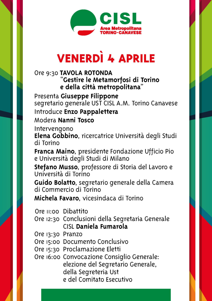 La conclusiva del IV Congreso dell’Ust Torino-Canavese, a nostro avviso, è stata la tavola rotanda dove è stato presentato e discusso un MANIFESTO con DIECI TITOLI, tutti interessanti per migliorare la vita dei lavoratori, ma sono solamente titoli! Anche se definiti sfide. “Questo – ha concluso il segretario Cisl Filippone – è ciò che vogliamo per la nostra area metropolitana e ci apprestiamo a raccogliere quante più disponibilità possibili a lavorare concretamente per il completamento delle metamorfosi di Torino e del Torinese”. Sono titoli senza alcuna definizione di richieste, di percorsi per come reallizzarli, e anche con poca analisi. Vedi con un clic qui https://www.cislpiemonte.it/torino-canavese/gestire-le-metamorfosi-di-torino-e-della-citta-metropolitana-lappello-manifesto-della-cisl/ – I DELEGATI HANNO SI’ PARTECIPATO, MA DA SPETTATORI. E’ UN METODO CHE ALLONTANA LA VERA PARTECIPAZIONE!